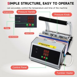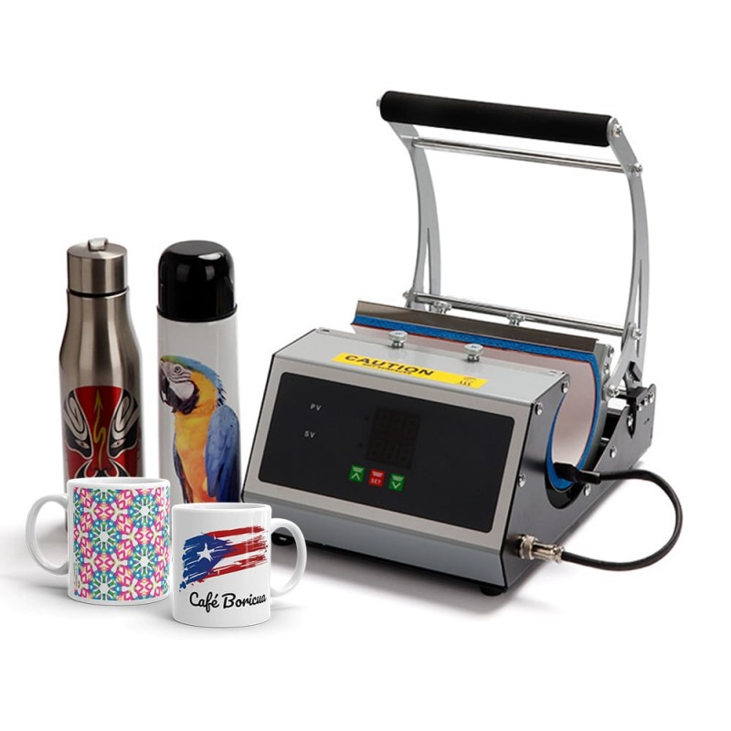 Presă termică pentru sublimare, potrivită pentru produse cu volum de până la 20 OZ, ideală pentru personalizarea cănilor, sticlelor și altor obiecte promoționale. Permite transferul precis al imaginilor, textelor sau logo-urilor prin sublimare, asigurând un rezultat profesional și durabil.